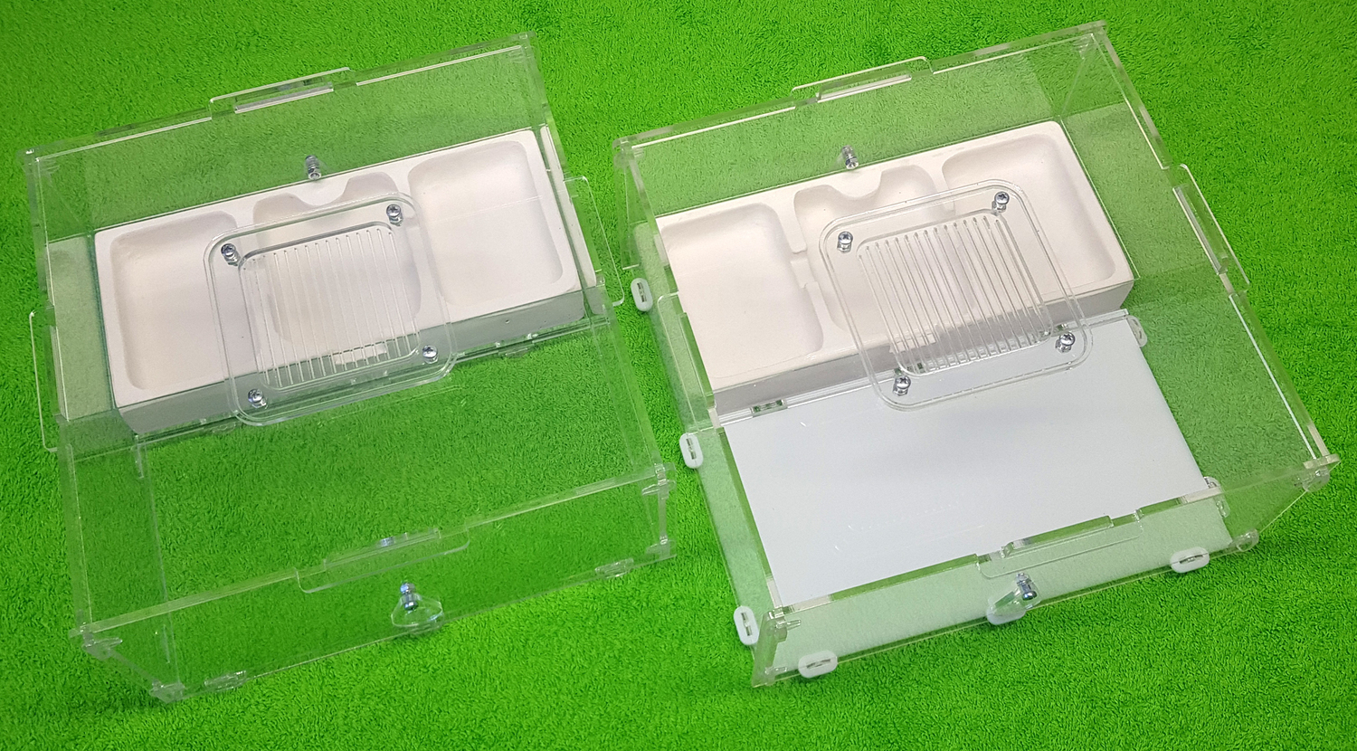 Премиум - Высота арены увеличена на 2 см, маленькая крышка увеличена для более удобного доступа к арене, добавлена фиксация большой крышки за счет защёлок, появилась возможность перекрытия жилых секций в гнезде. Идеально подходит для заселения как больших колоний экзотических видов муравьев, так и маленьких или даже одной матки.